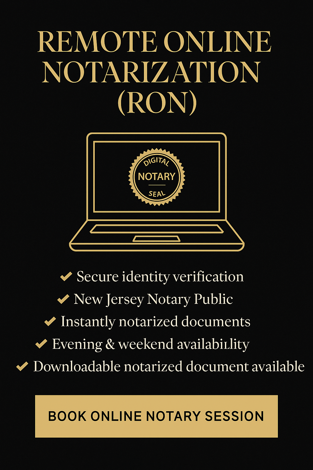 Mobile & remote online notarization and wedding officiant services across New Jersey — built around your schedule.